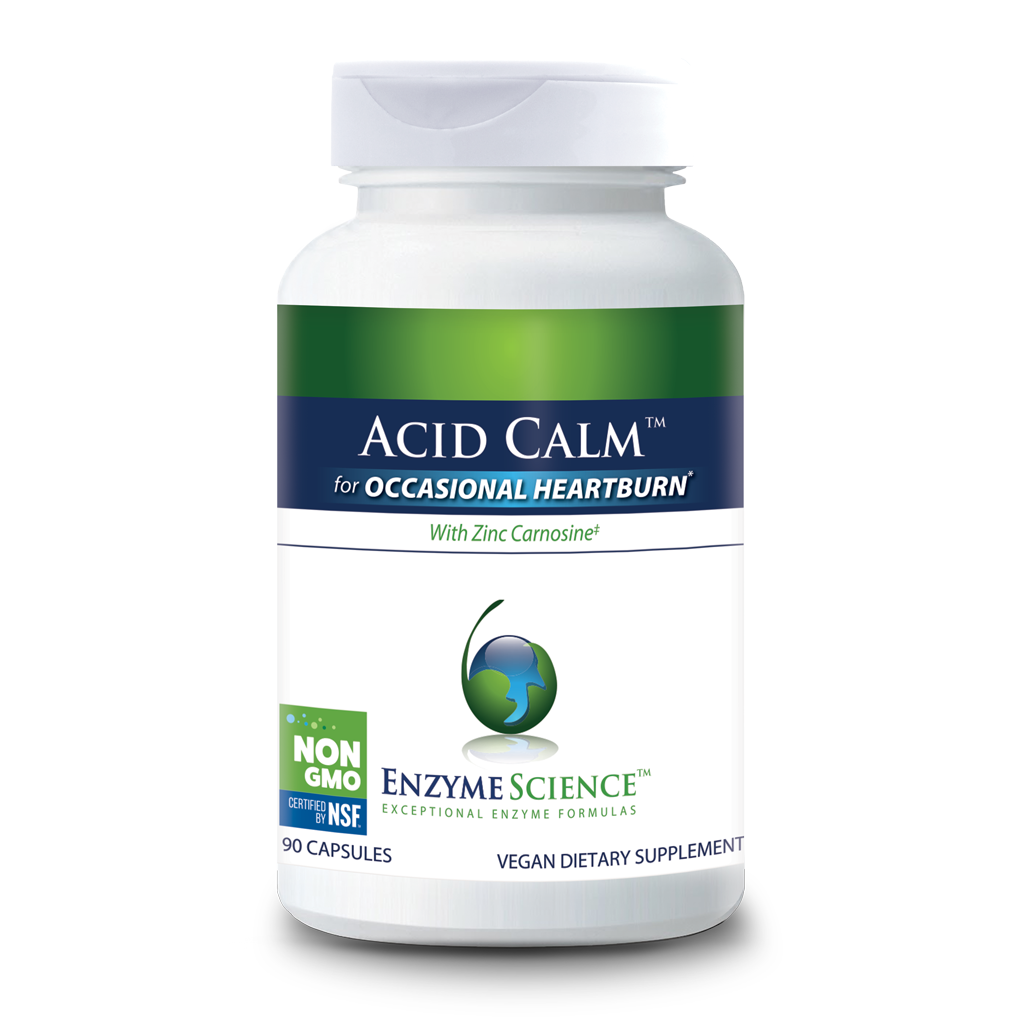Acid Calm™ supports those who experience occasional heartburn by helping to better digest problem foods, while also providing long-term support for the function of the GI system.* Zinc carnosine is included to optimize the mucosal lining of the stomach, acting as a buffer to gastric acid.*