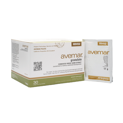 Authentic and Original AVEMAR is the only FWGE in the market that contains AVEMAR Pulvis™. It concentrates FWGE to the “bioactive fraction," termed Fermented Wheat Germ Extract – AVEMAR Pulvis™ (FWGE-AP). AVEMAR™ (FWGE-AP) contains the active molecules in wheat germ that provide biological activity for health benefits.