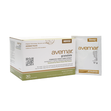 Studies have shown that AVEMAR™ Fermented Wheat Germ Extract containing AVEMAR Pulvis™ (FWGE - AP) helps to provide remarkable health benefits for a wide range of serious health challenges, while empowering the immune system and promoting cellular metabolic regulation.