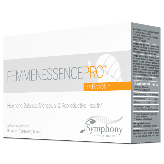 Through a proprietary manufacturing process, FemmenessencePRO HARMONY concentrates key active constituents in maca up to ten times higher than what is found in regular raw maca, and increases the bioavailability increasing water solubility from 68% to 99%.