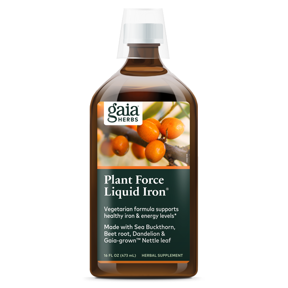 Great taste! Made with honey. Iron is an essential mineral that enables the blood to carry lifegiving oxygen to the cells.* This is why maintaining healthy iron levels is crucial for helping you feel more energetic, vibrant and alive.* Yet iron does not work alone. It acts in concert with a range of food-bound nutrients that facilitate its absorption and help release oxygen from the blood into the cells.* Gaia Herbs’ PlantForce Liquid Iron provides highly absorbable iron in a base of select botanicals, gently extracted to liberate their natural content of these nutrients.*